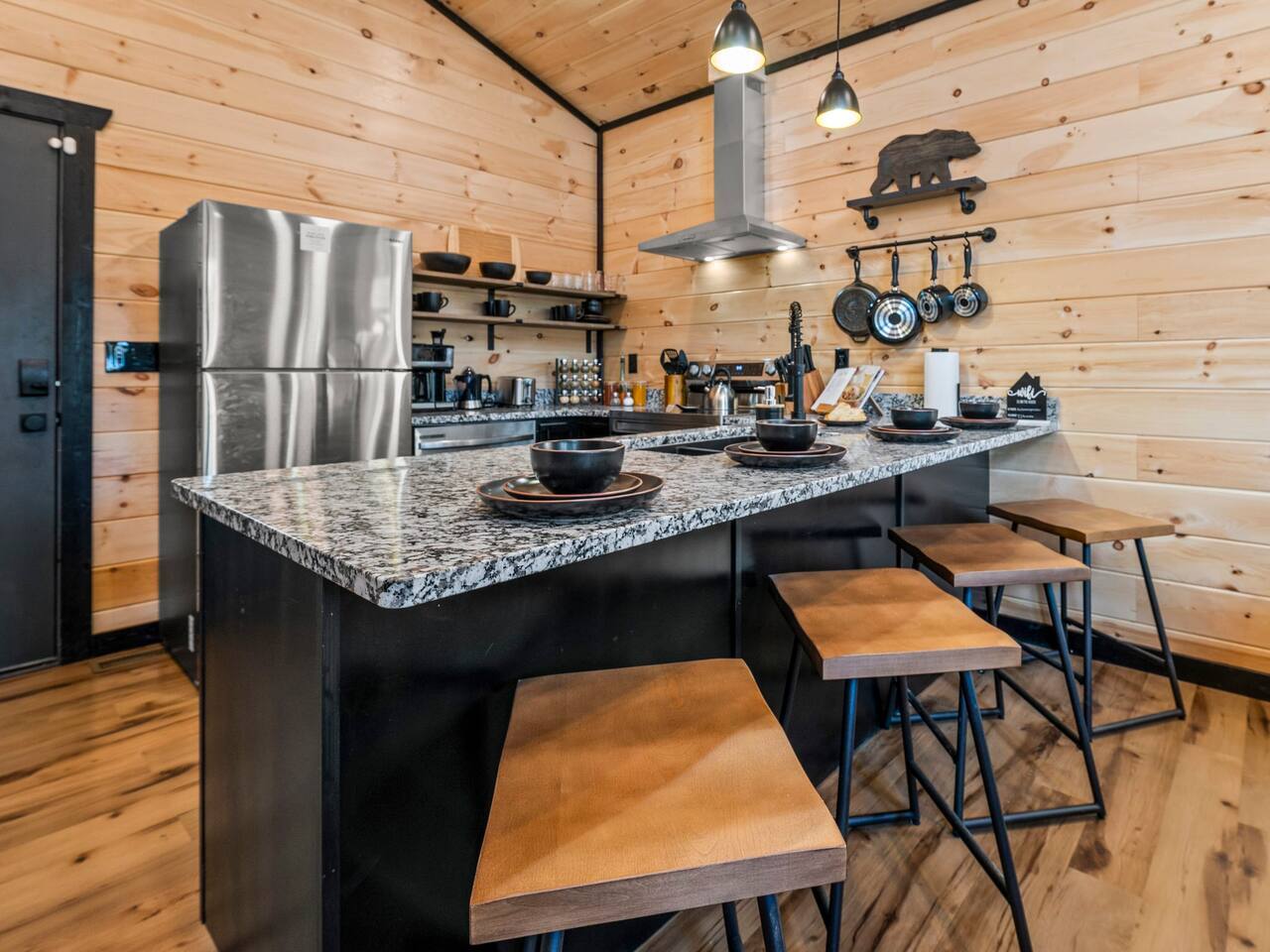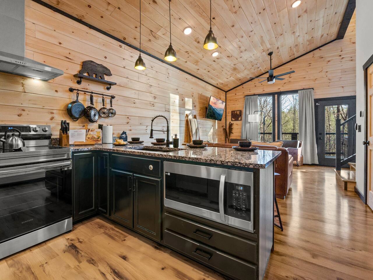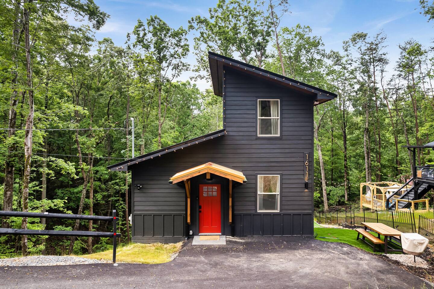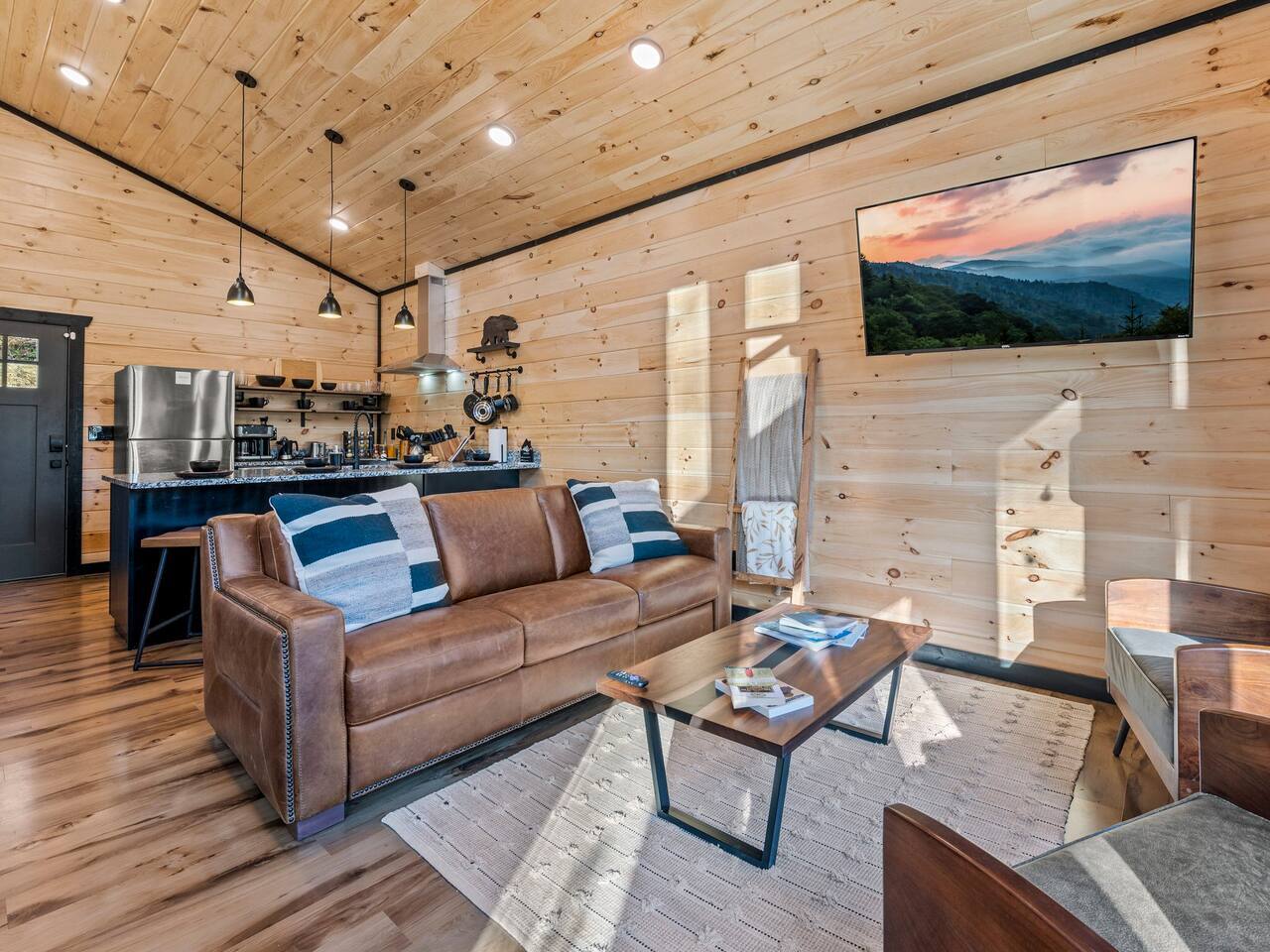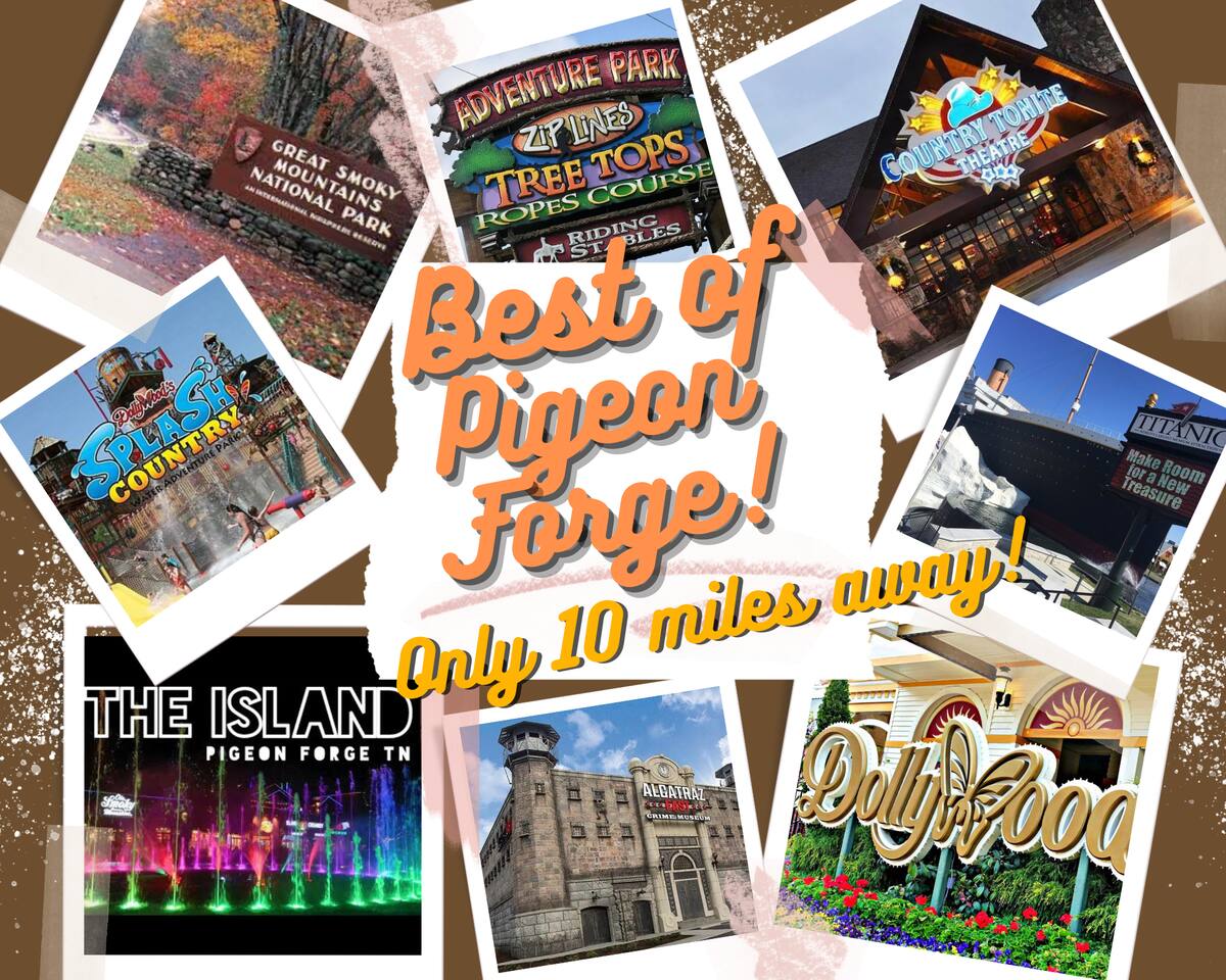 ♦ BRAND NEW 2B/2B Cabin ♦ 5 miles to ALL Pigeon Forge Attractions and 10 miles to Smoky Mountain National Park ♦ 2 King Beds, 1 Queen Sleeper Sofa ♦ All Rooms Have RoKu TV & Ultra-fast Wifi ♦ 6 Person Hot Tub ♦ Modern Minibar, Wine glasses, Decanter set ♦ Mini-Golf and Board Games ♦ Huge Lounge for 6 and Gas Fire Pit ♦ Outdoor BBQ and Picnic Table ♦ Fully Stocked Kitchen: Coffee maker, Creamer, Spices, Instant Pot, Kettle, Blender, Plates, Silverware ♦ Washer/Dryer ♦ Paved and Easy Driveway
