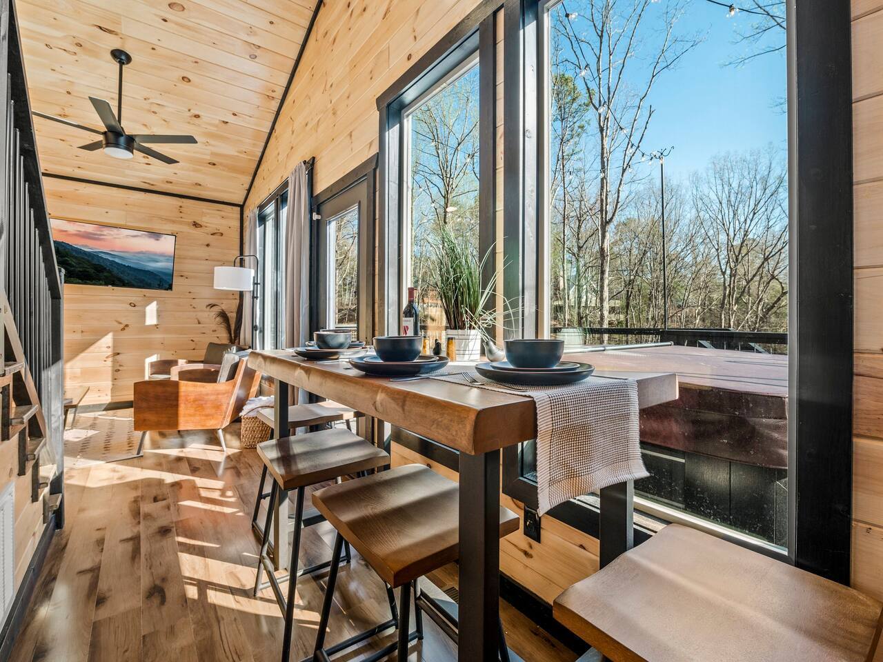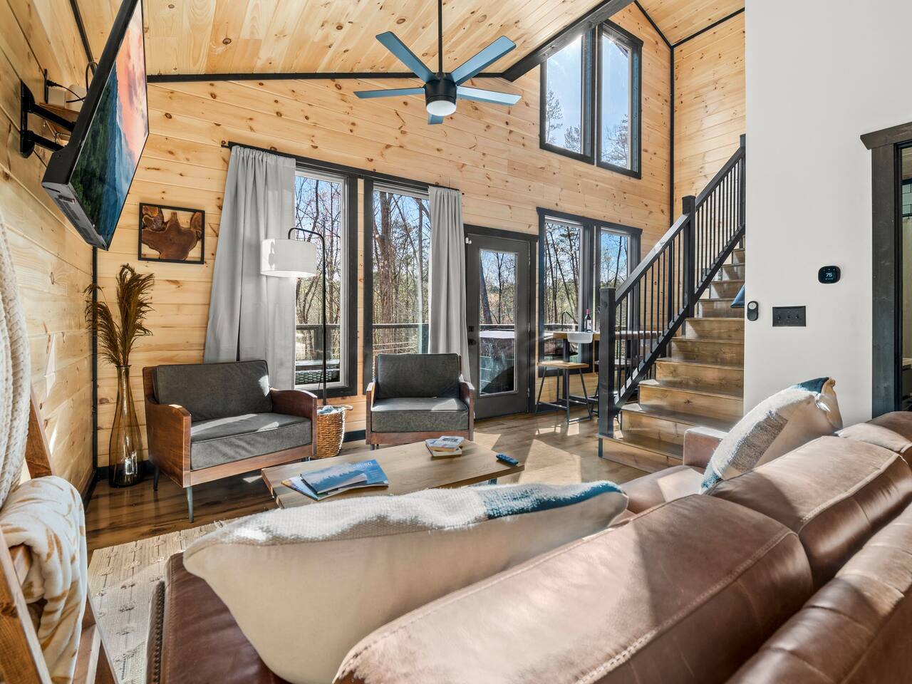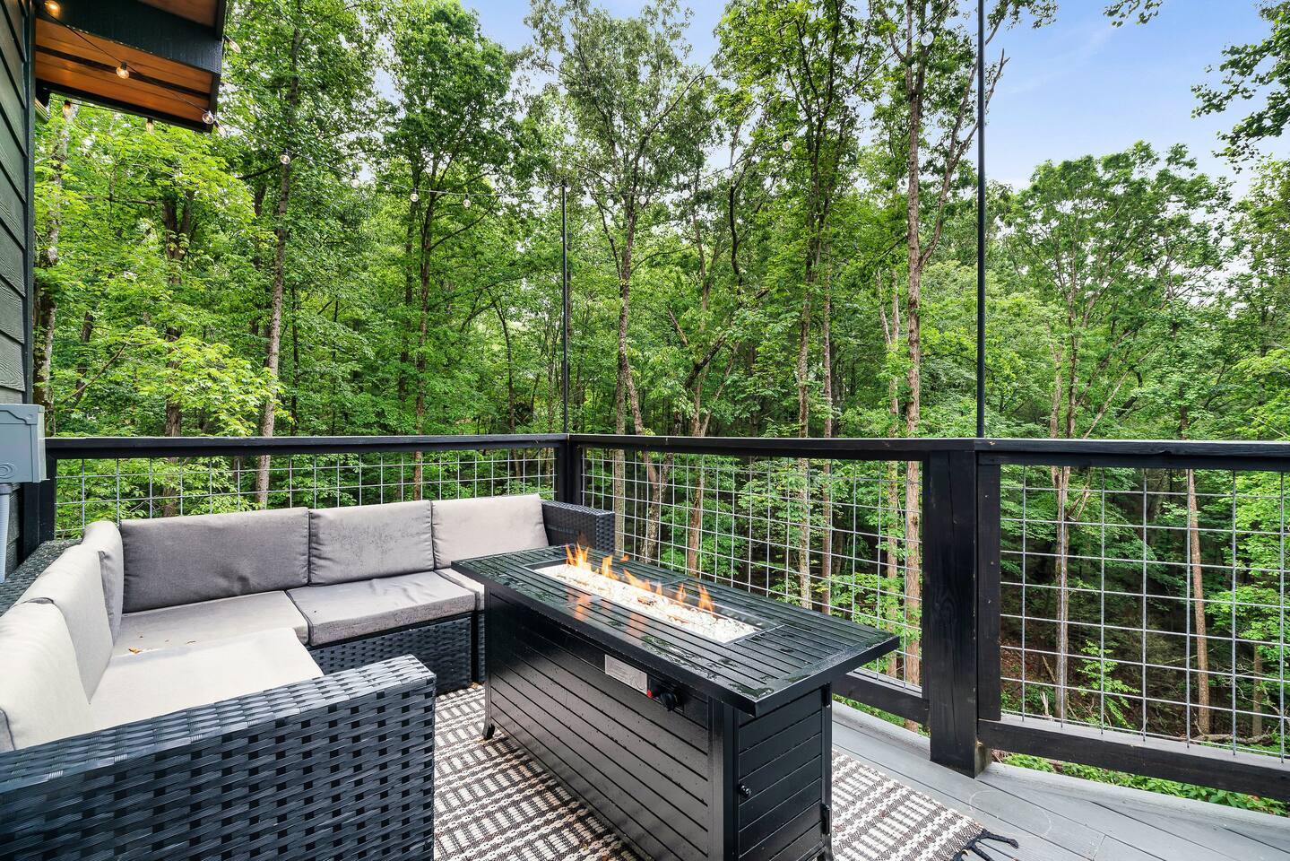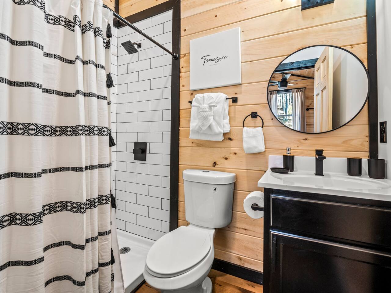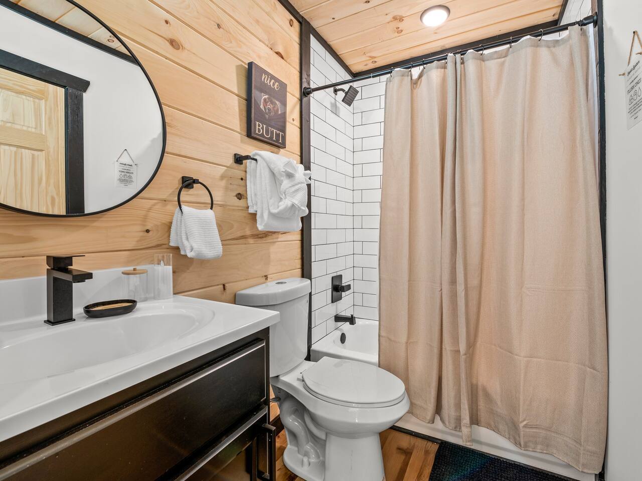🌟 Na'Cho Average Cabin — Luxury Modern Cabin near Dollywood with Hot Tub, Mini Bar, Fire Pit, and Amazing Views! 🌟 ♦ 5 Miles to Top Attractions! Prime Location in Sevierville! ♥ Welcome to Na'Cho Average Cabin, your unforgettable Smoky Mountain getaway! This brand-new 2-bedroom, 2-bathroom luxury cabin blends modern design with cozy mountain charm, offering spectacular forest and mountain views and incredible amenities. Located just 5 miles from Dollywood, The Island in Pigeon Forge, and countless Smoky Mountain attractions, our Sevierville cabin rental is perfectly situated for family adventures, romantic getaways, and group trips! After hiking scenic trails in Great Smoky Mountains National Park, relax in your private 6-person hot tub, toast marshmallows at the modern gas fire pit, or sip cocktails at your very own mini bar with stunning forest views. ♦ Easy Access! Our cabin is located on a fully paved, lit driveway — no steep mountain roads to worry about! ♦ You can't miss us: Our cabin is uniquely lit with bright rooftop lights, making evening arrivals easy and magical. 🛌 The Space: ✔ 2 Large Bedrooms — Each with a KING bed + Queen sleeper sofa (Sleeps 6 total) ✔ Smart TVs in every room + Superfast Wi-Fi (1.2 GBPS!) ✔ 2 Modern Bathrooms — One with a soaking tub, one with a walk-in shower ✔ Fully Stocked Kitchen — K-Cups, coffee, crockpot, instant pot, blender, cookware, spices, and more! ✔ Coffee Bar with Keurig machine ✔ Retro Mini Bar with neon lighting, wine glasses, shot glasses, mini fridge & decanter set ✔ Board Games for family fun nights ✔ Washer and Dryer for your convenience ✔ Outdoor Mini-Golf Course for kids and adults ✔ Large Private Deck with forest and mountain views ✔ Oversized Hot Tub perfect for soaking after a day of exploring ✔ Outdoor Lounge Sofas + Fire Pit for cozy evenings under the stars ✔ Charcoal BBQ Grill + Picnic Table (BYO Charcoal) 🍳 Fully Stocked Kitchen: Cook up a storm with everything you need: K-cups, ground coffee, creamers, crockpot, instant pot, blender, pots, pans, dishes, utensils, spices, cooking spray, and more. 🛏️ Spacious Bedrooms: Two luxurious King Suites with modern, cozy decor, smart Roku TVs, and large windows to soak in the natural light and forest views. 🛁 Spa-Inspired Bathrooms: The downstairs bathroom features a relaxing soaking tub, while the upstairs suite offers a walk-in rainfall shower — the perfect spa experience after a long hike. 📺 Modern Lounge Area: Open-concept living space with 55” Roku TV, Queen sleeper sofa, and direct access to the vibrant mini bar for late-night fun. 🍹 Retro Mini-Bar: Chill your favorite drinks in the mini fridge, toast with stylish wine and shot glasses, and enjoy hip neon vibes overlooking the forest. 🌲 Outdoor Oasis: Unwind in the large hot tub, cozy up by the fire pit, or challenge your group to a game of mini-golf under the twinkling outdoor lights. 🎯 Fun Extras: Outdoor lighting for beautiful night photos Outdoor mini-golf set Fast Wi-Fi for streaming and remote work Paved and easily accessible driveway — no 4WD needed! 🎢 Perfect for: ✅ Family vacations ✅ Couples’ retreats ✅ Friends’ getaways ✅ Romantic honeymoons ✅ Dollywood trips ✅ Adventures to Smoky Mountain National Park ★☆ Book your stay today at Na'Cho Average Cabin and create unforgettable memories in Sevierville! ☆★