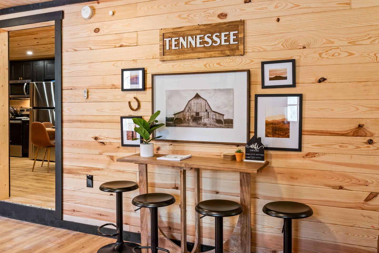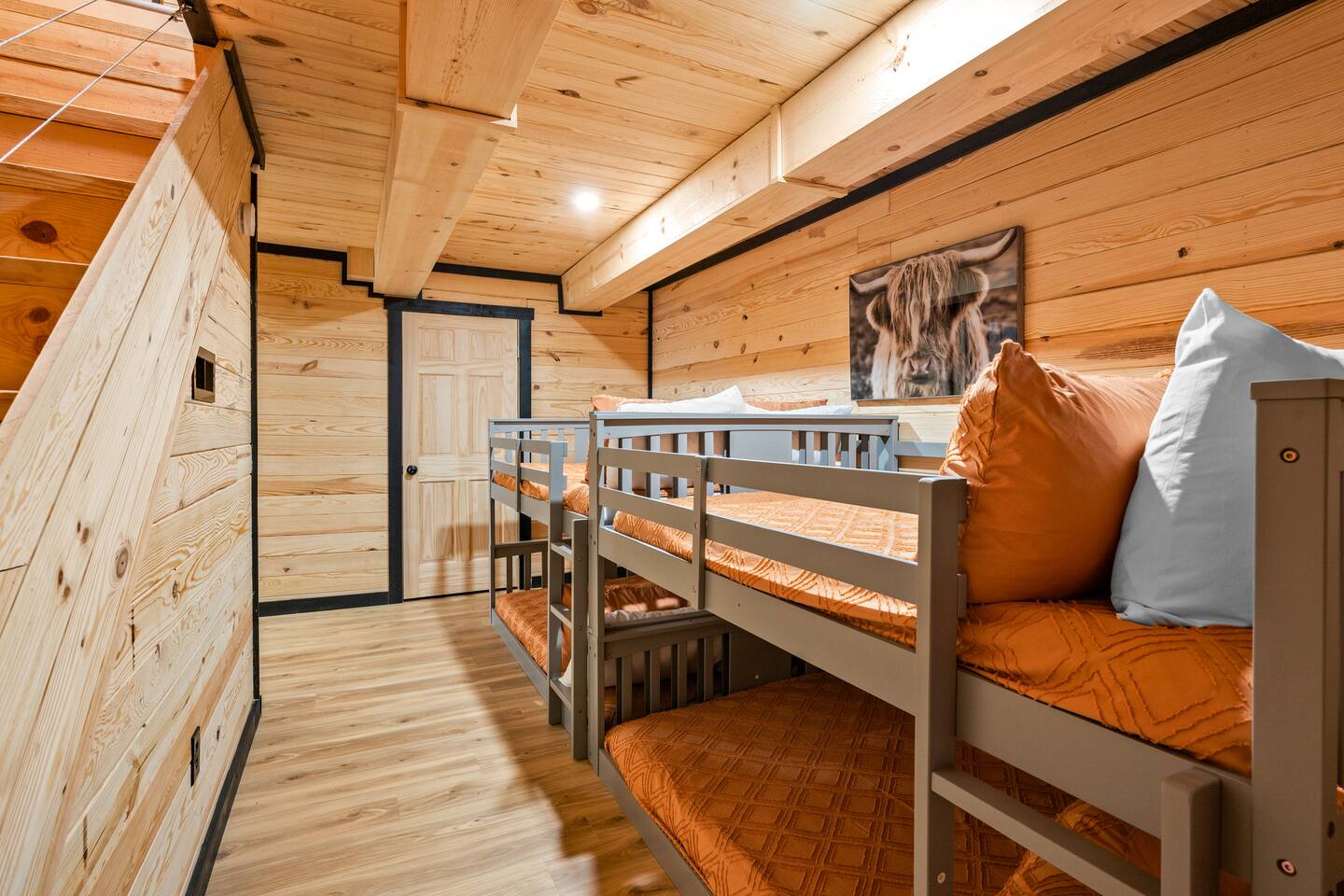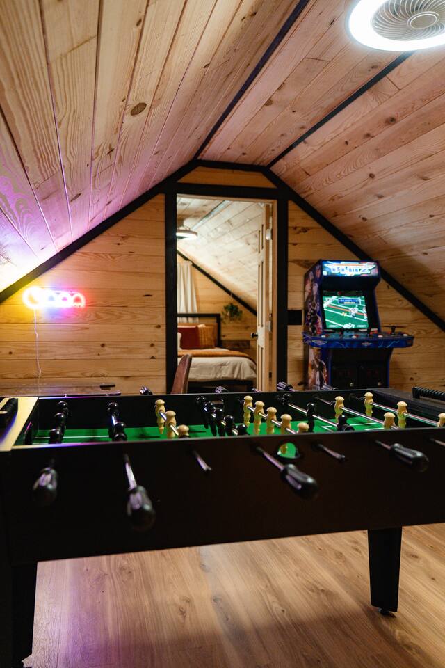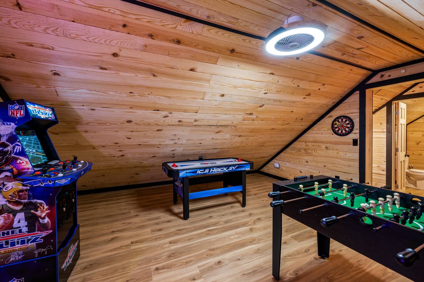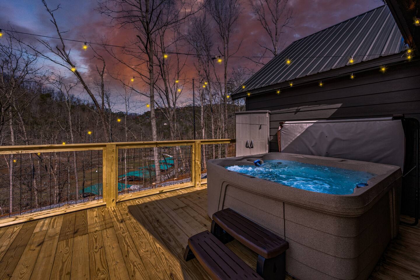 ♦ LOCATION LOCATION LOCATION!!! Only 4 miles to attractions in Pigeon Forge!♦ ♥ Welcome to Little Roost Cabin! Enjoy our Brand new Modern Luxury cabin with amazing views and various amenities. ♥ ♦ There is so much to do in this cabin, but if you decide to venture out to Dollywood, The Islands and many attractions are only a 4 mile trip! Enjoy the steamy hot tub that can accommodate 8 people after a fun day of hiking to the Smoky Mountain National Park ♦ This cabin is located on paved driveway that is very easy to drive on. The road to the cabin is fully paved and lit with Asphalt lighting making it SUPER convenient to navigate. Ours is the only cabin in the ENTIRE area that has amazing lights which makes it hard to miss. The Space: ☀ 3 bedrooms and 1 open bunk bedroom: 2 king-size bed, 1 full sized bed, 1 Twin size, 4 full-size bunk beds, 1 queen-size sleeper sofa. Can sleep total of 12 people comfortably. ☀ All the rooms have TVs with Fast Wifi ☀ 3 Bathrooms: 1 Bathroom downstairs has a tub, and the other has a walk-in shower. 1 Bathroom upstairs has a walk-in shower ☀ Well-stocked kitchen: Coffee maker, k cups, assortment of spices, croc pot, instant pot, kettle, blender, frying pans, plates, cups, and silverware ☀ Coffee maker with K-cups ☀ Salt, pepper, and cooking oil are provided ☀ Warm and inviting lounge with large Roku TV ☀ Amazing Game room with multiple arcade games, Foosball, Air Hockey and Darts ☀ A convenient laundry with both a washer and dryer ☀ Outdoor PuttPutt, Disc Golf and Tether Ball for adults and kids to enjoy ☀ Outdoor deck with Mountain views and Amazing Horse views overseeing Big Rock Dude Ranch ☀ Large outdoor 8 person hot tub to relax and enjoy the view ☀ Outdoor wood fire pit and Charcoal BBQ ☀ High-speed WiFi throughout the home ☆☆ KITCHEN ☆☆ The Kitchen comes fully stocked with K-cups, Coffee maker, Assortment of Spices, Croc pot, Instant pot, Kettle, Blender, Frying pans, Plates, Cups, and Silverware. ☆☆ BEDROOMS ☆☆ This two-level cabin offers 2 spacious KING Bedrooms. The third bedroom has a full sized bed and 1 Twin size bed. The open Bunk bedroom comes with 4 FULL size Bunk beds, each featuring a modern and homely finish. The main comes with a luxurious king-size bed, a 40 inch Roku TV, and French Doors presenting plenty of natural light with access to the Back Deck The second bedroom has a king-size bed and the third bedroom has 2 beds (a full sized bed and twin size bed), respectively. A 40 inch Roku TV, cozy decor, and enough storage for your belongings. The Bunk room has 4 Full size bunk beds with their own Bathroom. This room does not have a private door and shares the stairs going upstairs ☆☆ BATHROOMS ☆☆ Three bathrooms are thoughtfully stocked with everything you may need for your stay, including luxury essentials and bath towels. The 2 bathroom downstairs have a tub and walk-in shower while the upstairs bathroom has a walk-in shower. So you can choose between a quick shower or a long soak after an active day at the National Park. ☆☆ LIVING AREA ☆☆ The living area is complete with a modern Queen Sleeper sofa and comfortable seating options and direct open access to the Minibar. It also features a 55 inch Roku TV paired with high-speed internet for your entertainment. So grab a drink a drink, sit back and enjoy your favorite show or movie. ☆☆ GAME ROOM☆☆ The game room comes with arcades such as PacMan, NFL Football and hundred other games. We also have Foosball, Air Hockey, and darts ☆☆ OUTSIDE SPACE AND FIRE PIT☆☆ Step out into the deck to be welcomed by a large 6 person hot tub and amazing lounge area with fire pit. Are you tired after a long day of hiking? Jump into the hot tub with amazing jetted spas! Want to keep it classy? Enjoy the amazing view of the outdoors all while relaxing on the lounge sofa. Grab a drink and enjoy roasting marshmallows!!! ☆☆ OUTSIDE GAMES AND BBQ ☆☆ The cabin has an amazing Fire-pit with stumps and chair seating. We provide activities such as PuttPutt, Disc Golf, Tether Ball for both Adults and Kids to enjoy! The putt putt sticks are 17 inches and extend to 32 inches. There is an outdoor charcoal BBQ and all utensils required for using the BBQ. Guests should BYO Charcoal. The entire outdoors area is fitted with beautiful lighting all throughout creating amazing picturesque moments. ★☆ Book Today & Let Us Take Care Of You In Pigeon Forge! ☆★