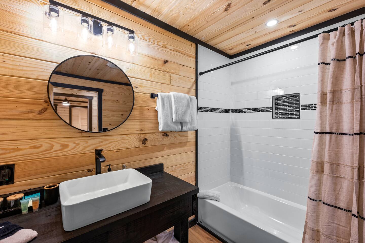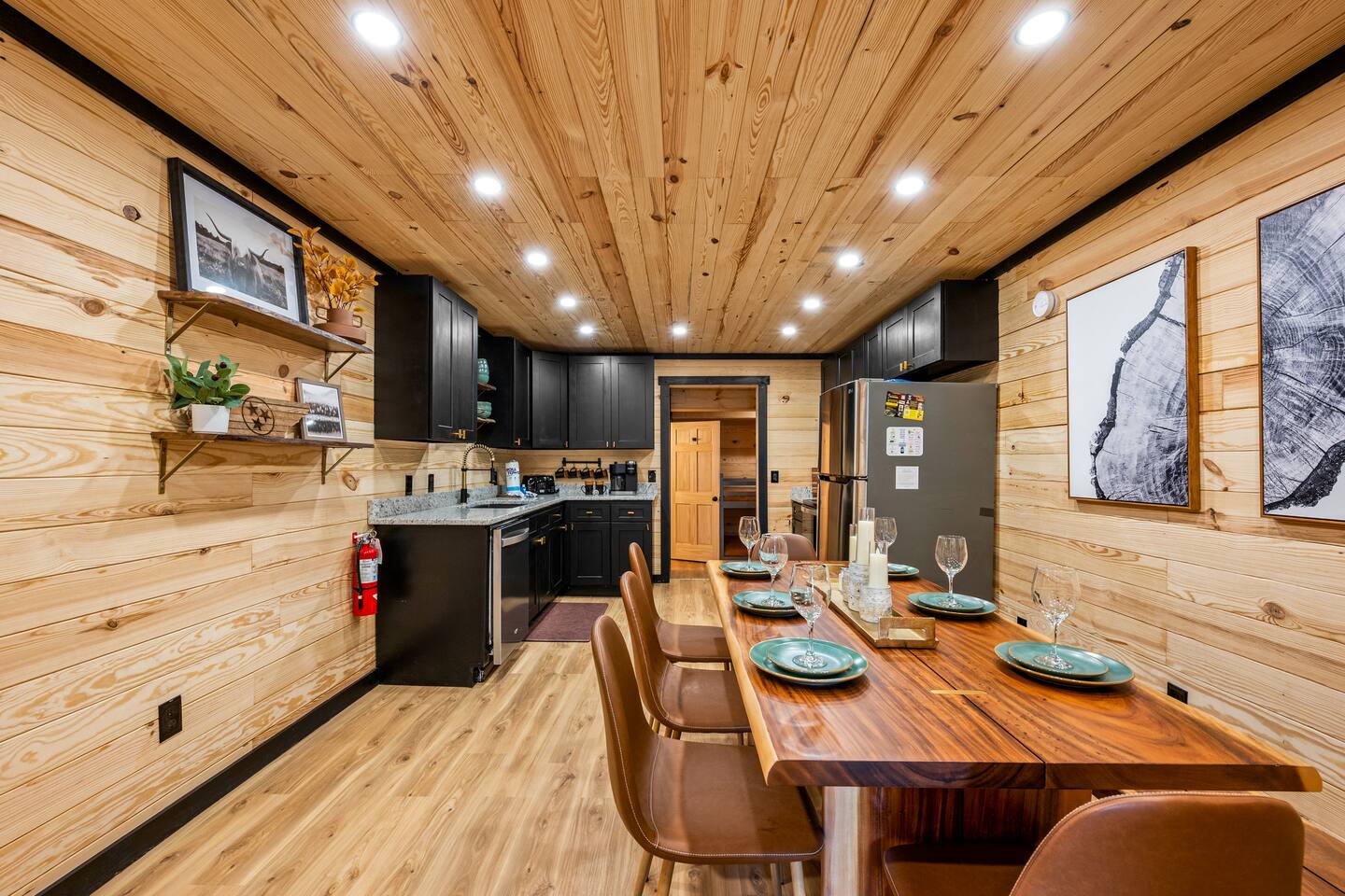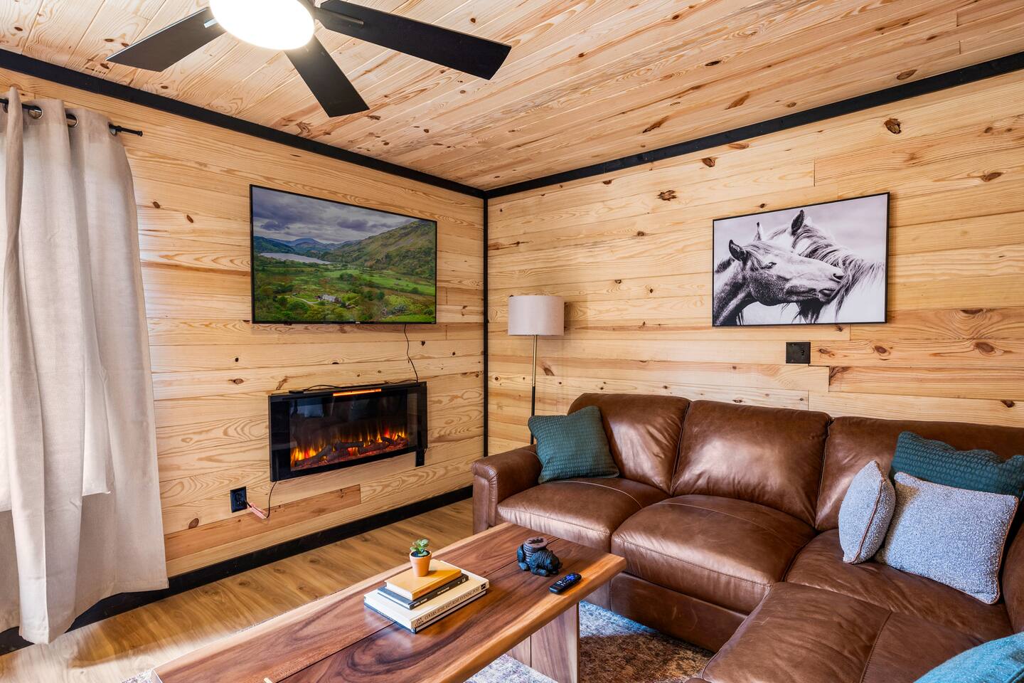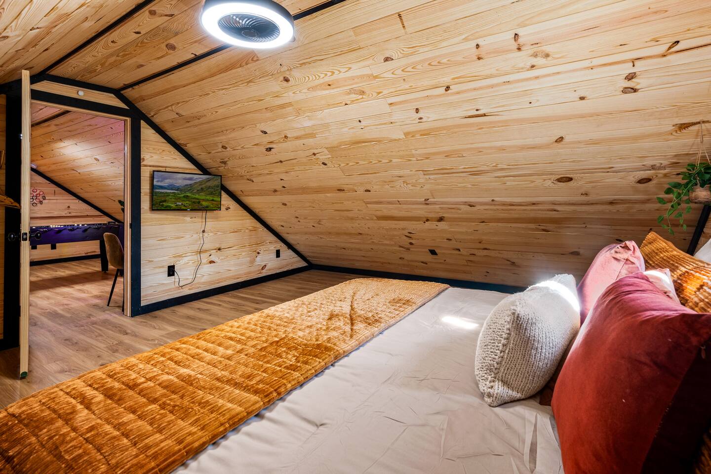 ♦ LOCATION LOCATION LOCATION!!! Only 4 miles to attractions in Pigeon Forge!♦ ♥ Welcome to Little Roost Cabin! Enjoy our Brand new Modern Luxury cabin with amazing views and various amenities. ♥ ♦ There is so much to do in this cabin, but if you decide to venture out to Dollywood, The Islands and many attractions are only a 4 mile trip! Enjoy the steamy hot tub that can accommodate 8 people after a fun day of hiking to the Smoky Mountain National Park ♦ This cabin is located on paved driveway that is very easy to drive on. The road to the cabin is fully paved and lit with Asphalt lighting making it SUPER convenient to navigate. Ours is the only cabin in the ENTIRE area that has amazing lights which makes it hard to miss. The Space: ☀ 3 bedrooms and 1 open bunk bedroom: 2 king-size bed, 1 full sized bed, 1 Twin size, 4 full-size bunk beds, 1 queen-size sleeper sofa. Can sleep total of 12 people comfortably. ☀ All the rooms have TVs with Fast Wifi ☀ 3 Bathrooms: 1 Bathroom downstairs has a tub, and the other has a walk-in shower. 1 Bathroom upstairs has a walk-in shower ☀ Well-stocked kitchen: Coffee maker, k cups, assortment of spices, croc pot, instant pot, kettle, blender, frying pans, plates, cups, and silverware ☀ Coffee maker with K-cups ☀ Salt, pepper, and cooking oil are provided ☀ Warm and inviting lounge with large Roku TV ☀ Amazing Game room with multiple arcade games, Foosball, Air Hockey and Darts ☀ A convenient laundry with both a washer and dryer ☀ Outdoor PuttPutt, Disc Golf and Tether Ball for adults and kids to enjoy ☀ Outdoor deck with Mountain views and Amazing Horse views overseeing Big Rock Dude Ranch ☀ Large outdoor 8 person hot tub to relax and enjoy the view ☀ Outdoor wood fire pit and Charcoal BBQ ☀ High-speed WiFi throughout the home ☆☆ KITCHEN ☆☆ The Kitchen comes fully stocked with K-cups, Coffee maker, Assortment of Spices, Croc pot, Instant pot, Kettle, Blender, Frying pans, Plates, Cups, and Silverware. ☆☆ BEDROOMS ☆☆ This two-level cabin offers 2 spacious KING Bedrooms. The third bedroom has a full sized bed and 1 Twin size bed. The open Bunk bedroom comes with 4 FULL size Bunk beds, each featuring a modern and homely finish. The main comes with a luxurious king-size bed, a 40 inch Roku TV, and French Doors presenting plenty of natural light with access to the Back Deck The second bedroom has a king-size bed and the third bedroom has 2 beds (a full sized bed and twin size bed), respectively. A 40 inch Roku TV, cozy decor, and enough storage for your belongings. The Bunk room has 4 Full size bunk beds with their own Bathroom. This room does not have a private door and shares the stairs going upstairs ☆☆ BATHROOMS ☆☆ Three bathrooms are thoughtfully stocked with everything you may need for your stay, including luxury essentials and bath towels. The 2 bathroom downstairs have a tub and walk-in shower while the upstairs bathroom has a walk-in shower. So you can choose between a quick shower or a long soak after an active day at the National Park. ☆☆ LIVING AREA ☆☆ The living area is complete with a modern Queen Sleeper sofa and comfortable seating options and direct open access to the Minibar. It also features a 55 inch Roku TV paired with high-speed internet for your entertainment. So grab a drink a drink, sit back and enjoy your favorite show or movie. ☆☆ GAME ROOM☆☆ The game room comes with arcades such as PacMan, NFL Football and hundred other games. We also have Foosball, Air Hockey, and darts ☆☆ OUTSIDE SPACE AND FIRE PIT☆☆ Step out into the deck to be welcomed by a large 6 person hot tub and amazing lounge area with fire pit. Are you tired after a long day of hiking? Jump into the hot tub with amazing jetted spas! Want to keep it classy? Enjoy the amazing view of the outdoors all while relaxing on the lounge sofa. Grab a drink and enjoy roasting marshmallows!!! ☆☆ OUTSIDE GAMES AND BBQ ☆☆ The cabin has an amazing Fire-pit with stumps and chair seating. We provide activities such as PuttPutt, Disc Golf, Tether Ball for both Adults and Kids to enjoy! The putt putt sticks are 17 inches and extend to 32 inches. There is an outdoor charcoal BBQ and all utensils required for using the BBQ. Guests should BYO Charcoal. The entire outdoors area is fitted with beautiful lighting all throughout creating amazing picturesque moments. ★☆ Book Today & Let Us Take Care Of You In Pigeon Forge! ☆★