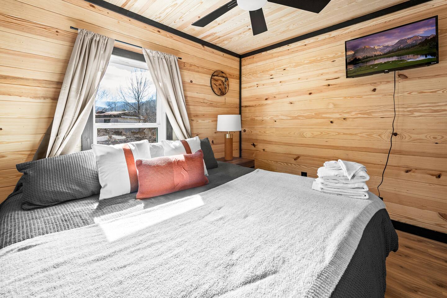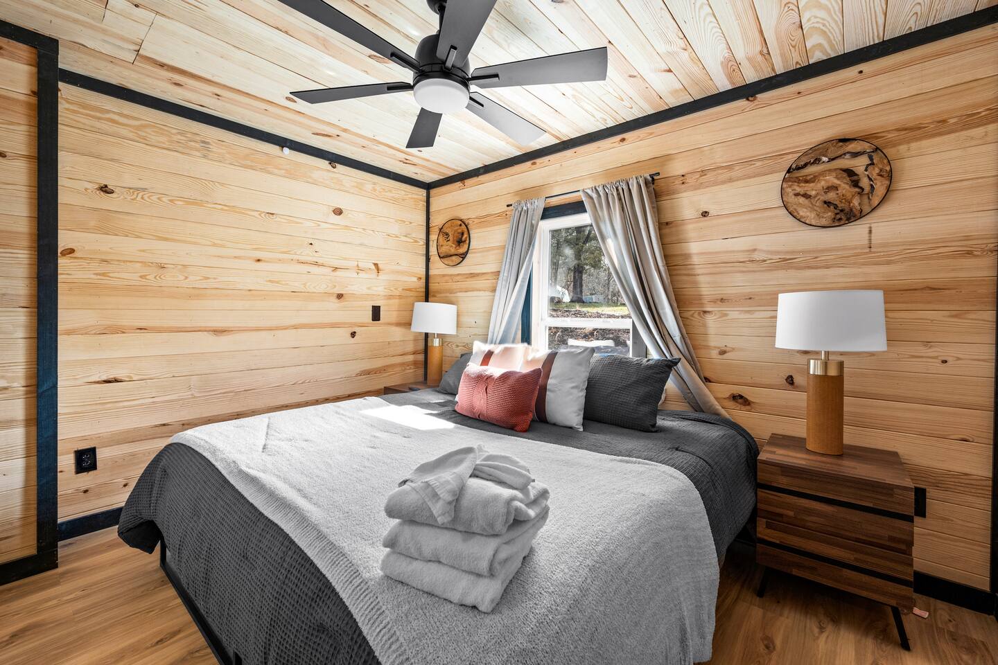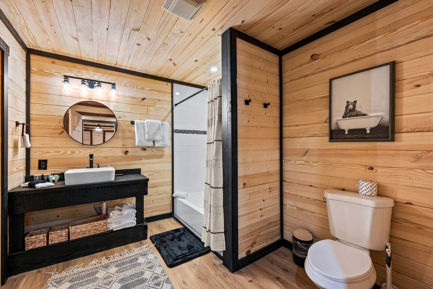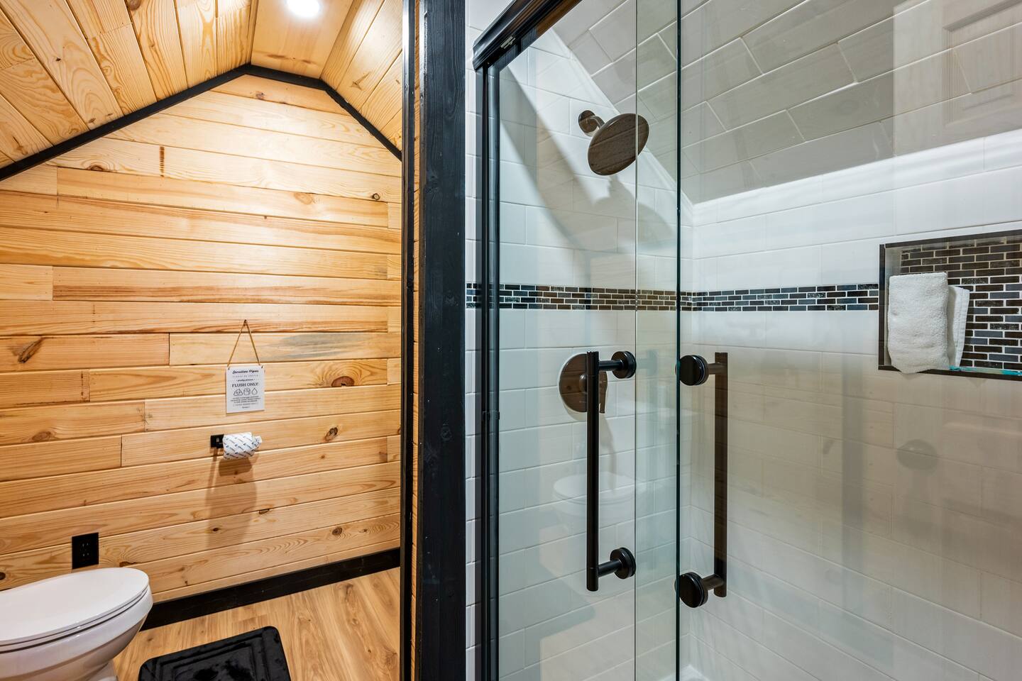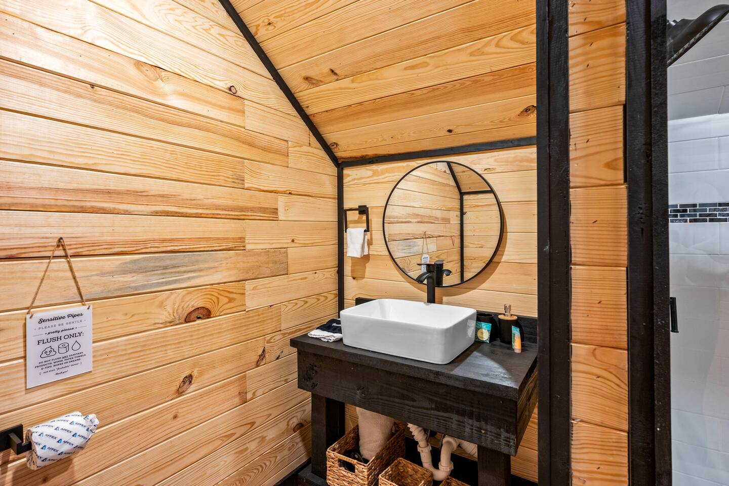♦ LOCATION LOCATION LOCATION!!! Only 4 miles to attractions in Pigeon Forge!♦ ♥ Welcome to Little Roost Cabin! Enjoy our Brand new Modern Luxury cabin with amazing views and various amenities. ♥ ♦ There is so much to do in this cabin, but if you decide to venture out to Dollywood, The Islands and many attractions are only a 4 mile trip! Enjoy the steamy hot tub that can accommodate 8 people after a fun day of hiking to the Smoky Mountain National Park ♦ This cabin is located on paved driveway that is very easy to drive on. The road to the cabin is fully paved and lit with Asphalt lighting making it SUPER convenient to navigate. Ours is the only cabin in the ENTIRE area that has amazing lights which makes it hard to miss. The Space: ☀ 3 bedrooms and 1 open bunk bedroom: 2 king-size bed, 1 full sized bed, 1 Twin size, 4 full-size bunk beds, 1 queen-size sleeper sofa. Can sleep total of 12 people comfortably. ☀ All the rooms have TVs with Fast Wifi ☀ 3 Bathrooms: 1 Bathroom downstairs has a tub, and the other has a walk-in shower. 1 Bathroom upstairs has a walk-in shower ☀ Well-stocked kitchen: Coffee maker, k cups, assortment of spices, croc pot, instant pot, kettle, blender, frying pans, plates, cups, and silverware ☀ Coffee maker with K-cups ☀ Salt, pepper, and cooking oil are provided ☀ Warm and inviting lounge with large Roku TV ☀ Amazing Game room with multiple arcade games, Foosball, Air Hockey and Darts ☀ A convenient laundry with both a washer and dryer ☀ Outdoor PuttPutt, Disc Golf and Tether Ball for adults and kids to enjoy ☀ Outdoor deck with Mountain views and Amazing Horse views overseeing Big Rock Dude Ranch ☀ Large outdoor 8 person hot tub to relax and enjoy the view ☀ Outdoor wood fire pit and Charcoal BBQ ☀ High-speed WiFi throughout the home ☆☆ KITCHEN ☆☆ The Kitchen comes fully stocked with K-cups, Coffee maker, Assortment of Spices, Croc pot, Instant pot, Kettle, Blender, Frying pans, Plates, Cups, and Silverware. ☆☆ BEDROOMS ☆☆ This two-level cabin offers 2 spacious KING Bedrooms. The third bedroom has a full sized bed and 1 Twin size bed. The open Bunk bedroom comes with 4 FULL size Bunk beds, each featuring a modern and homely finish. The main comes with a luxurious king-size bed, a 40 inch Roku TV, and French Doors presenting plenty of natural light with access to the Back Deck The second bedroom has a king-size bed and the third bedroom has 2 beds (a full sized bed and twin size bed), respectively. A 40 inch Roku TV, cozy decor, and enough storage for your belongings. The Bunk room has 4 Full size bunk beds with their own Bathroom. This room does not have a private door and shares the stairs going upstairs ☆☆ BATHROOMS ☆☆ Three bathrooms are thoughtfully stocked with everything you may need for your stay, including luxury essentials and bath towels. The 2 bathroom downstairs have a tub and walk-in shower while the upstairs bathroom has a walk-in shower. So you can choose between a quick shower or a long soak after an active day at the National Park. ☆☆ LIVING AREA ☆☆ The living area is complete with a modern Queen Sleeper sofa and comfortable seating options and direct open access to the Minibar. It also features a 55 inch Roku TV paired with high-speed internet for your entertainment. So grab a drink a drink, sit back and enjoy your favorite show or movie. ☆☆ GAME ROOM☆☆ The game room comes with arcades such as PacMan, NFL Football and hundred other games. We also have Foosball, Air Hockey, and darts ☆☆ OUTSIDE SPACE AND FIRE PIT☆☆ Step out into the deck to be welcomed by a large 6 person hot tub and amazing lounge area with fire pit. Are you tired after a long day of hiking? Jump into the hot tub with amazing jetted spas! Want to keep it classy? Enjoy the amazing view of the outdoors all while relaxing on the lounge sofa. Grab a drink and enjoy roasting marshmallows!!! ☆☆ OUTSIDE GAMES AND BBQ ☆☆ The cabin has an amazing Fire-pit with stumps and chair seating. We provide activities such as PuttPutt, Disc Golf, Tether Ball for both Adults and Kids to enjoy! The putt putt sticks are 17 inches and extend to 32 inches. There is an outdoor charcoal BBQ and all utensils required for using the BBQ. Guests should BYO Charcoal. The entire outdoors area is fitted with beautiful lighting all throughout creating amazing picturesque moments. ★☆ Book Today & Let Us Take Care Of You In Pigeon Forge! ☆★