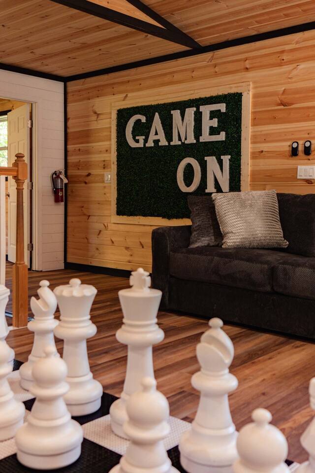 ♦ 4 miles to ALL Pigeon Forge Attractions And 10 miles to Smokies National Park! ♦ Sleeps NOT MORE THAN 16 ♦ Indoor Swimming Pool ♦ Outdoor Pickleball Court & Hot Tub ♦ Theater Room & recliners ♦ Indoor Human sized chess, Arcades & games ♦ 2 Kings, 2 Queens, 4 Twin Bunks, 2 Queen Sleeper Sofas ♦ All Rooms Have RoKu TV & Fast Wifi ♦ Beautiful backyard With Fire Pit and Charcoal BBQ ♦ Fully Stocked Kitchen: Coffee maker, Spices, Kettle, Blender, Plates, Silverware & more ♦ Washer/Dryer/Dishwasher