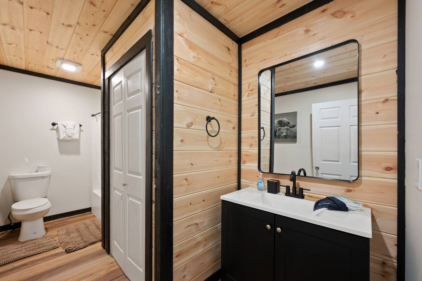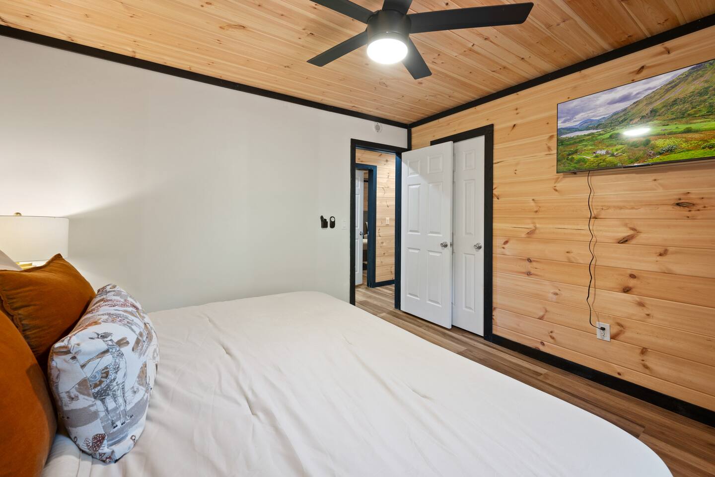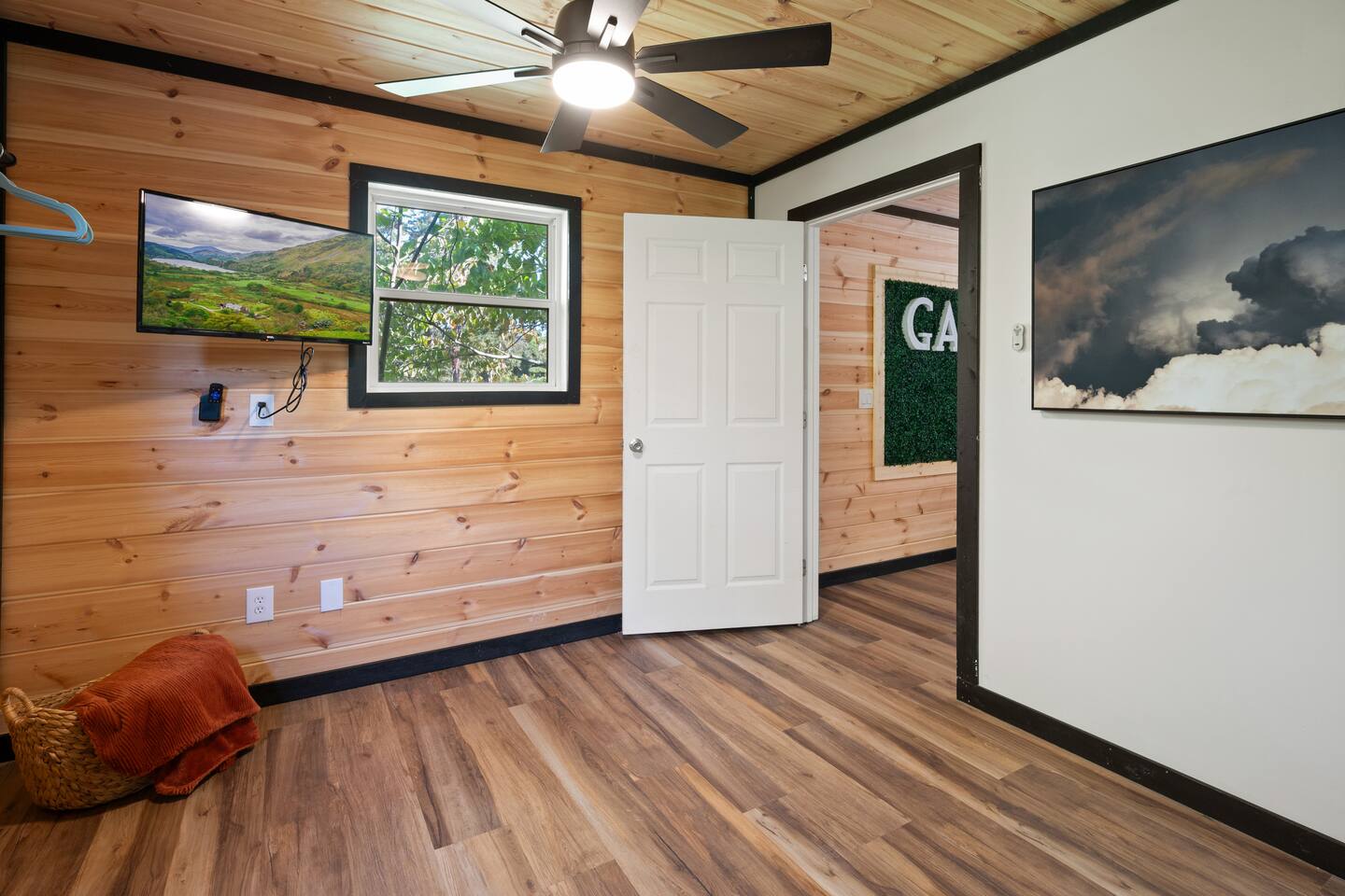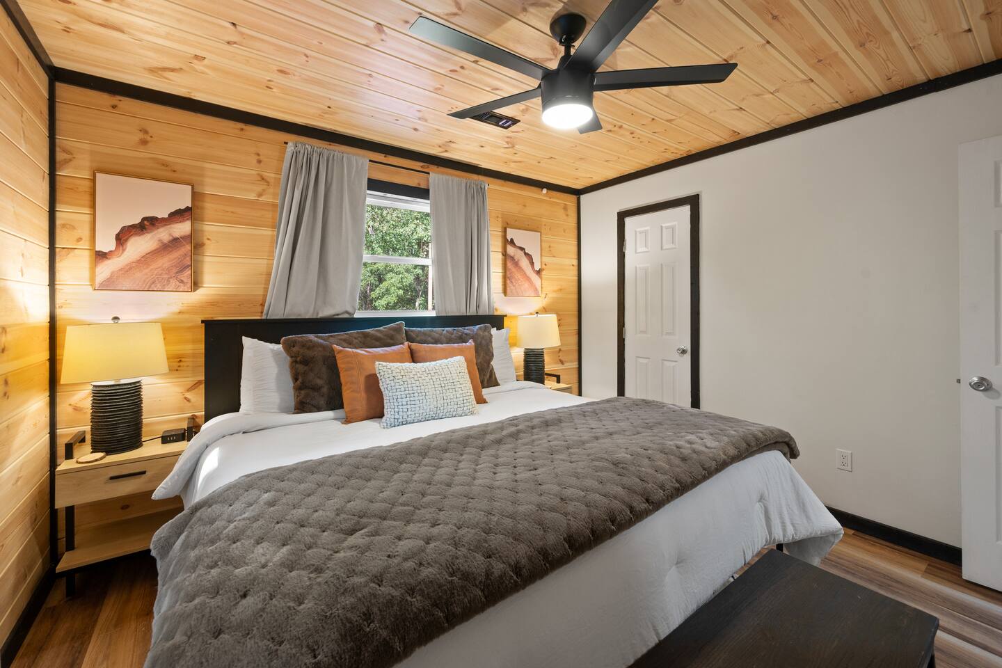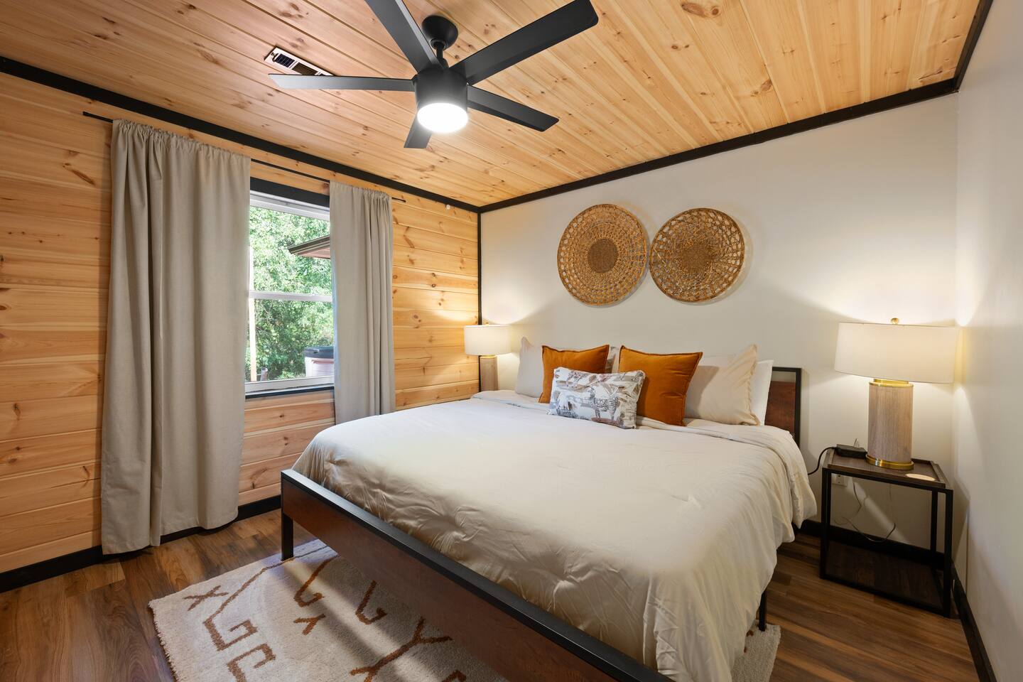 Free parking is available on the driveway, and can fit up to 5 cars. The outdoor cameras on the driveway and backyard are for your peace of mind, and the home features a smart lock for convenient and smooth check-in.