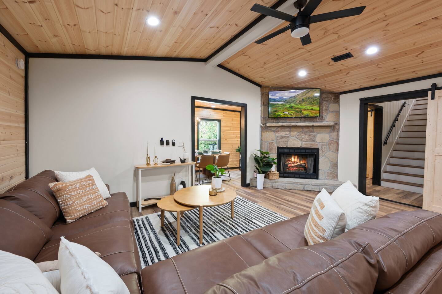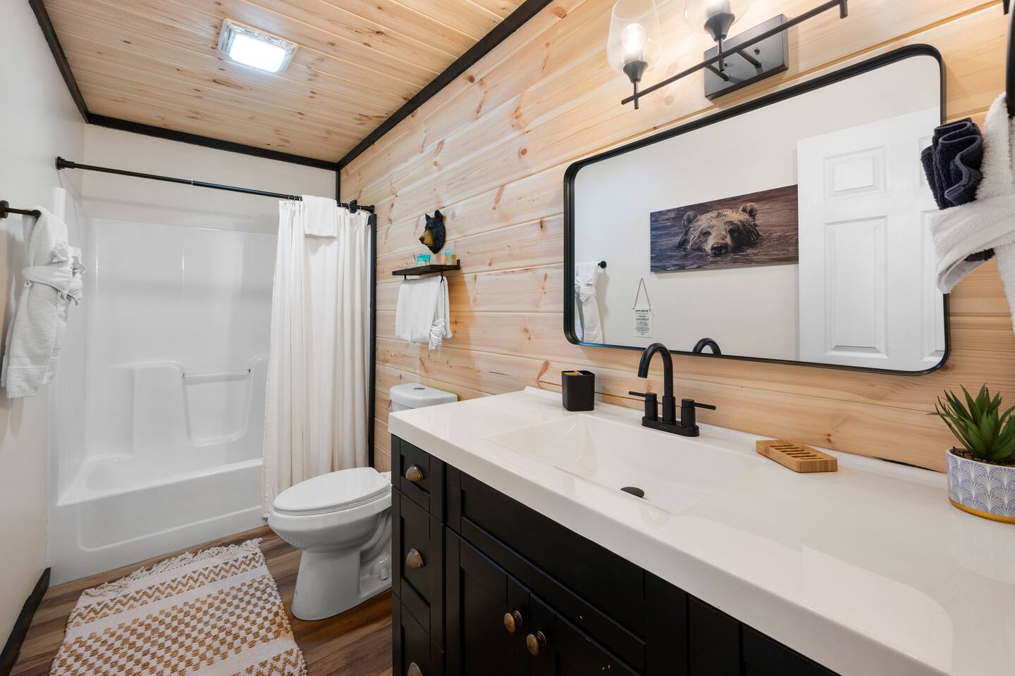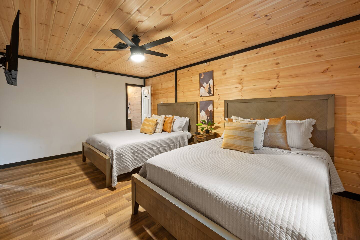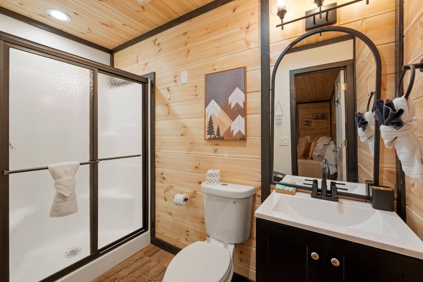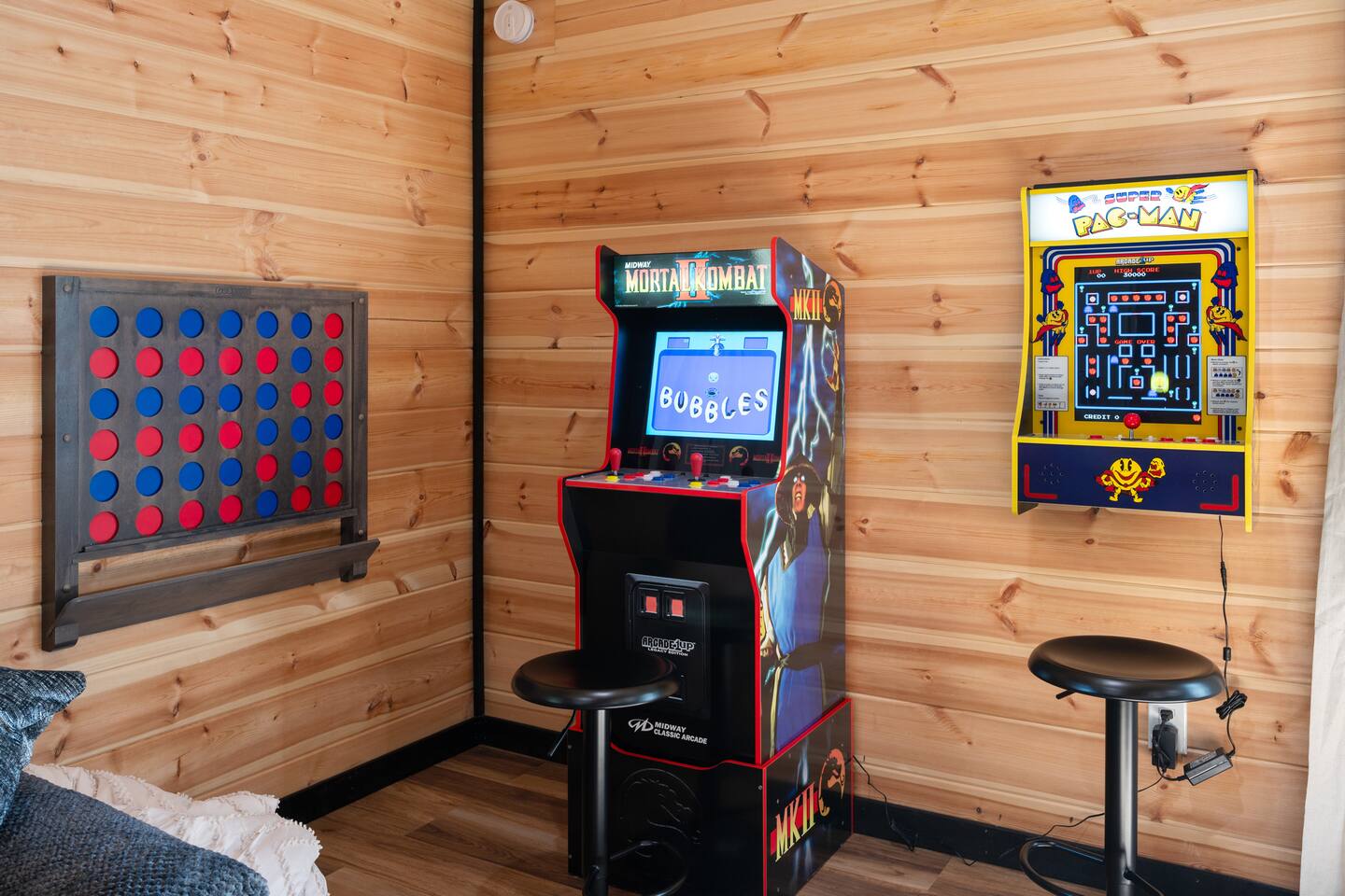 ♦ LOCATION LOCATION LOCATION!!! Only 4 miles to attractions in Pigeon Forge!♦ ♥ Welcome to HillBilly Hilton Cabin! Enjoy our Brand new 4B/3B + Loft Modern Luxury cabin with amazing views and various amenities. ♥ ♦ WE CANNOT ACCOMODATE MORE THAN 16 HUMANS ♦ There is so much to do in this cabin, but if you decide to venture out to Dollywood, The Islands and many attractions are only a 4 mile trip! Enjoy the heated indoor swimming pool and steamy hot tub that can accommodate 8 people after a fun day of hiking to the Smoky Mountain National Park ♦ This cabin is located on paved road that is very easy to drive on. The Space: ☀ 4 Large bedrooms + Loft: 2 king-size beds, 2 queen size beds 4 twin-size bunk beds, 2 queen-size sleeper sofas. Can sleep total of 16 people comfortably. ☀ All the rooms have TVs with Fast Wifi ☀ 3 Bathrooms: 2 Bathrooms downstairs. 1 has a tub shower combo, and the other has a walk-in shower. 1 Bathroom upstairs has a tub shower combo ☀ Heated indoor swimming pool ☀ Large backyard with a pickleball court, Disc golfs, firepit, Hot tub and Charcoal BBQ ☀ Theater room with 9 recliner seats ☀ Amazing Game room with Human size chess, multiple arcade games, Skeeball, Air Hockey and Foosball ☀ Warm and inviting lounge with large Roku TV ☀ A convenient laundry with both a washer and dryer ☀ Outdoor Pickleball and Disc Golf for adults and kids to enjoy ☀ Outdoor seasonal Wooded views ☀ Large outdoor 6 to 8 person hot tub to relax and enjoy the view ☀ Outdoor wood burning fire pit and Charcoal BBQ ☀ High-speed WiFi throughout the home ☆☆ KITCHEN ☆☆ ☀ Well-stocked kitchen: Coffee maker, assortment of spices, croc pot, instant pot, kettle, blender, frying pans, plates, cups, and silverware ☀ Coffee maker ☆☆ BEDROOMS ☆☆ This two-level cabin offers 2 spacious KING Bedrooms, master bedroom with 2 QUEEN beds and 1 Bunk room with 4 TWIN size Bunk beds, each featuring a modern and homely finish. The main comes with 2 queen-size bed, a 40 inch Roku TV, and attached bathroom The second and third bedroom have luxurious king-size bed, a 40 inch Roku TV, cozy decor, and enough storage for your belongings. The Bunk room has 4 Twin size bunk beds with their own Bathroom. The game room has 2 queen sleeper sofas. PLEASE NOTE: The game room does not have a private door and shares the stairs coming upstairs ☆☆ BATHROOMS ☆☆ Three bathrooms are thoughtfully stocked with everything you may need for your stay, including luxury essentials and bath towels. The 2 bathroom downstairs have a tub and walk-in shower while the upstairs bathroom has a tub shower. So you can choose between a quick shower or a long soak after an active day at the National Park. ☆☆ LIVING AREA ☆☆ The living area is complete with a large lounge sofa and comfortable seating options and direct open access to the kitchen and dining room. It also features a 55 inch Roku TV paired with high-speed internet for your entertainment. So grab a drink, sit back and enjoy your favorite show or movie. ☆☆ GAME ROOM☆☆ The game room comes with an amazing human sized chess game, arcades such as PacMan, Mortal Kombat and hundred other games. We also have Foosball, skeeball, Air Hockey, and connect4 ☆☆ OUTSIDE SPACE AND FIRE PIT☆☆ Step out into the backyard to be welcomed by an amazing pickleball court, a large 6 to 8 person hot tub and amazing fire pit. Are you tired after a long day of hiking? Jump into the swimming pool or hot tub or BOTH with amazing jetted spas! Want to keep it classy? Enjoy the amazing view of the outdoors all while relaxing by the fire. Grab a drink and enjoy roasting marshmallows!!! ☆☆ OUTSIDE GAMES AND BBQ ☆☆ The cabin has an amazing pickleball court, Disc golf Fire-pit with chairs and stumps for additional seating for both Adults and Kids to enjoy! There is an outdoor charcoal BBQ and all utensils required for using the BBQ. Guests should BYO Charcoal. The entire outdoors area is fitted with beautiful lighting all throughout creating amazing picturesque moments. ★☆ Book Today & Let Us Take Care Of You In Pigeon Forge! ☆★